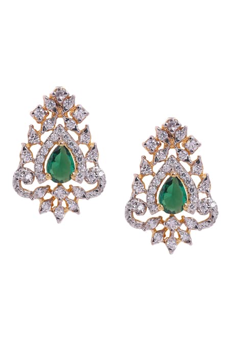 Intricate damask floret design, Tear drop green crystal embellishment, Cubic zirconia encrustments