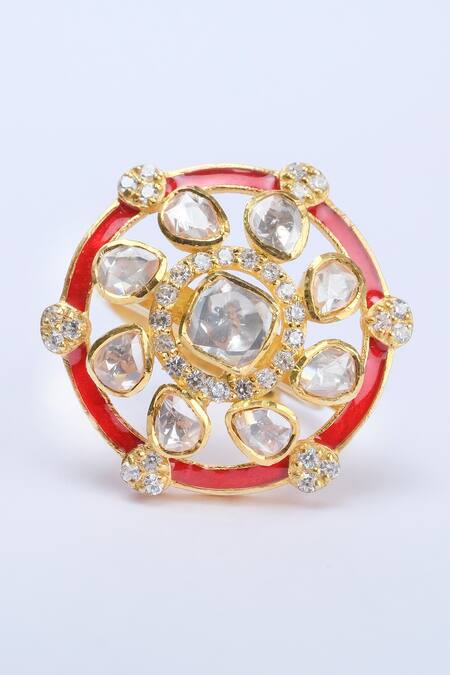 Red Mirrors Enamelled Moissanite Polki Embellished Ring