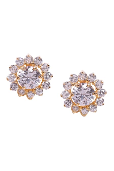 Gold Plated Crystals Floret Cubic Zirconia Studs