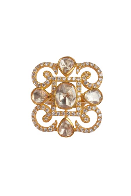 Buy_Sica Jewellery_Gold Plated Imitation Diamonds Moissanite Polki Embellished Ring _Online_at_Aza_Fashions