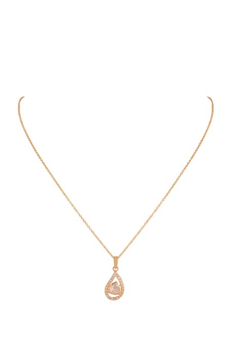 Gold finish pendant necklace featuring a moissanite polki drop pendant