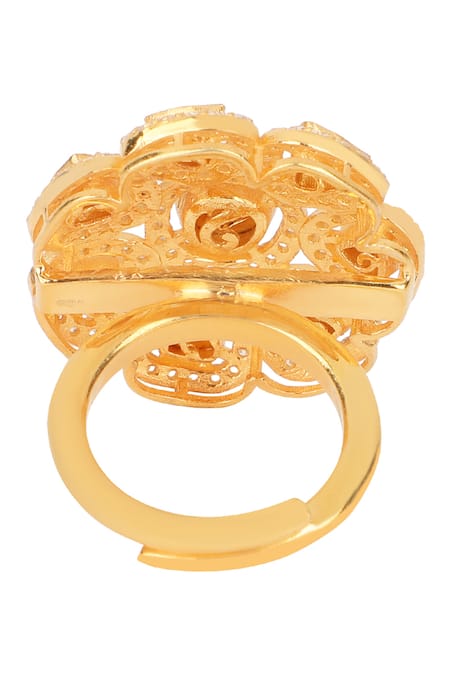 Adjustable design for a perfect fit, Floral pattern with intricate detailing, Moissanite polki and zircons for added sparkle
