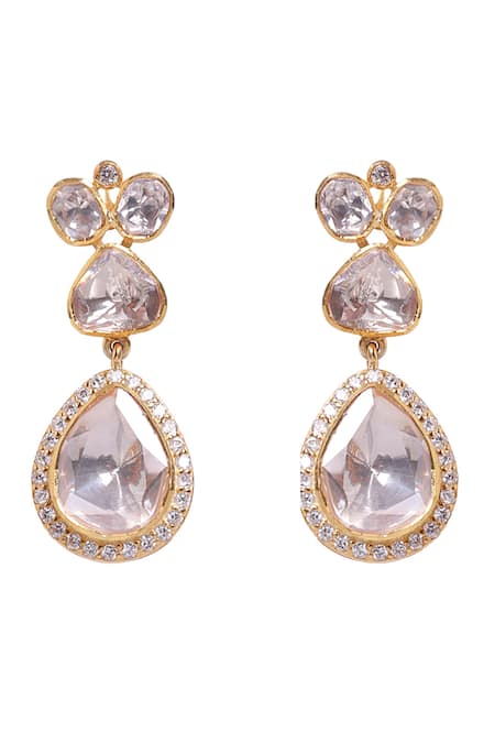 Tear drop shaped moissanite polki design, Cubic zirconia encrustments, Gold plated finish