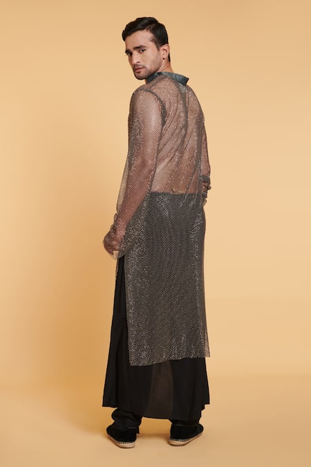 Grey sheer kurta in crystal mesh base. Comes with loose pant.