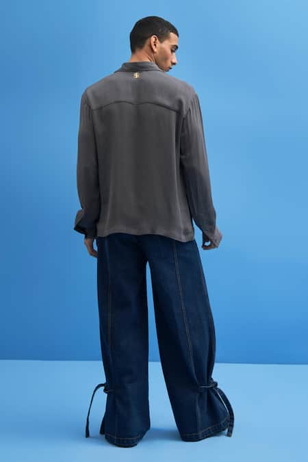 Grey Cotton Georgette Sutairu Hand Embroidered Shirt