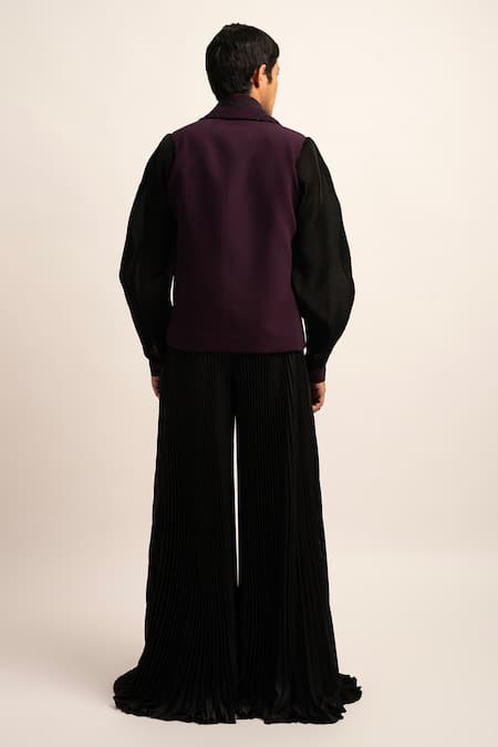 Black Satin The Vanguard Accordion Pleated Flared Trouser