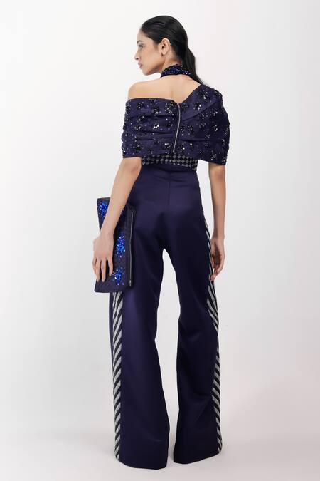 Buy_Siddhant Agrawal_Navy Beads, Embroidery, Sequins Lunar Moss Clutch _at_Aza_Fashions