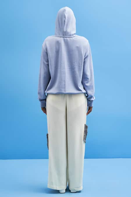 Steel blue hoodie featuring a closed neckline and full sleeves
