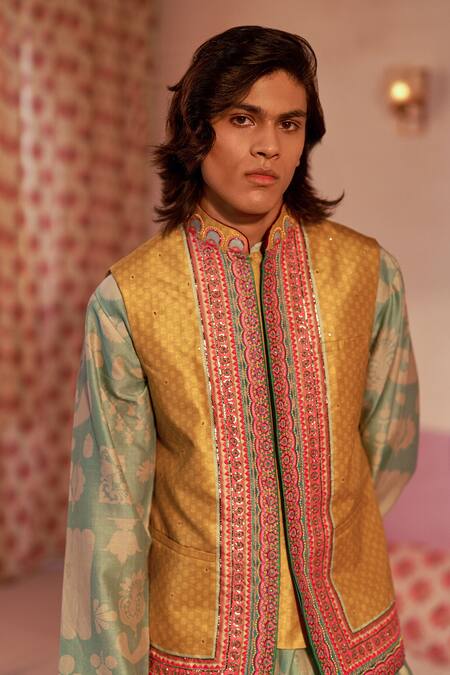 Yellow Cut Work Cutdana Embroidered Ochre Bundi