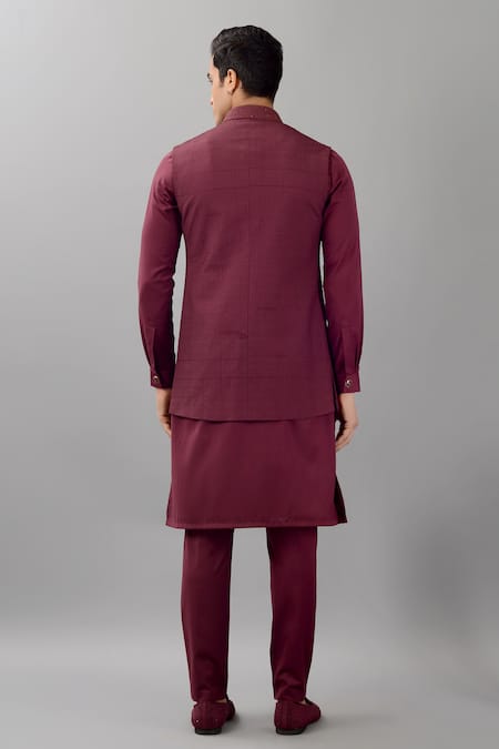 Maroon bundi featuring star thread embroidery detail and a mandarin collar