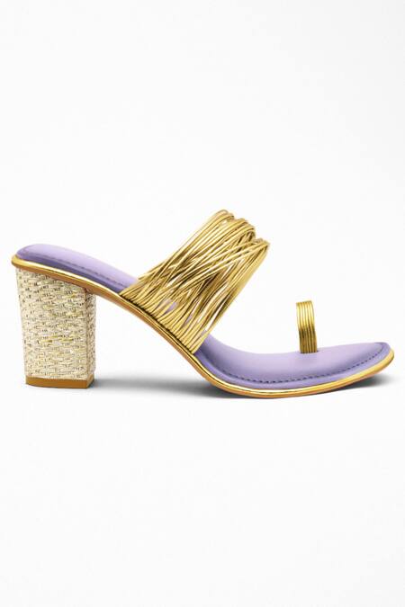 Purple block heels featuring layered chudi straps and a toe ring detailing
