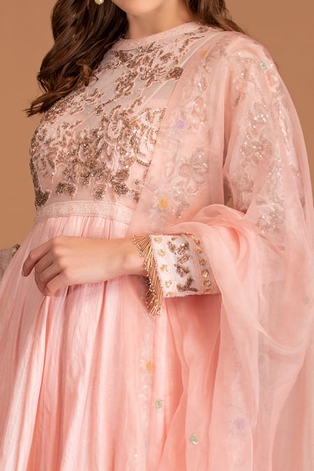 Pink anarkali with sequin and cutdana embellishment on the yoke. Comes with dupatta.