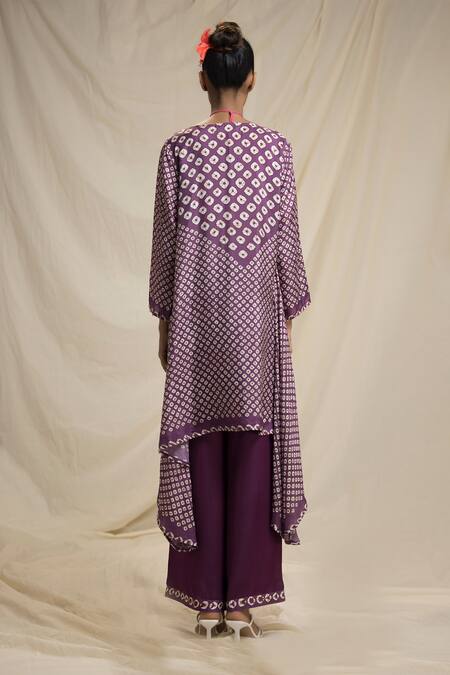 Purple Silk Round Bandhani Print Tunic And Pant Set