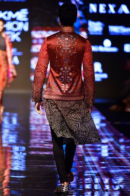Buy_Rajdeep Ranawat_Red Silk Bandhej Kurta_at_Aza_Fashions