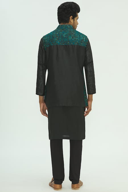 Black bundi with all-over multi color aari embroidery.