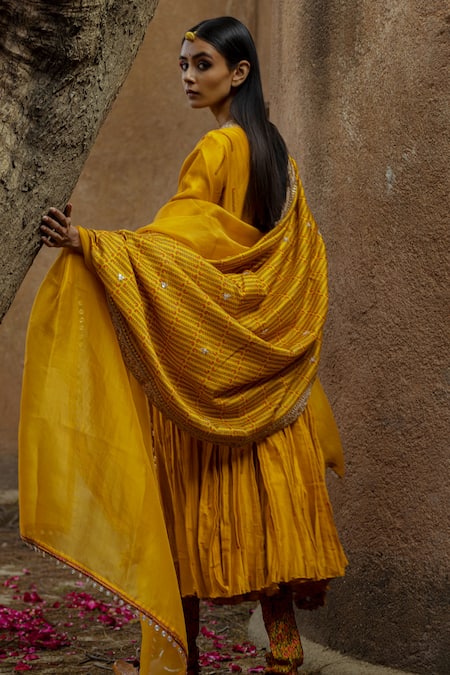 Yellow Silk Chanderi Anarkali Set