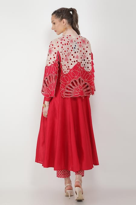 Cape with slits and front tie up, Layered collar, Anarkali with keyhole front