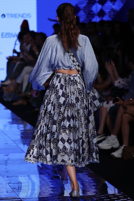 Buy_Punit Balana_Blue Silk Chanderi Round Skirt Set _at_Aza_Fashions