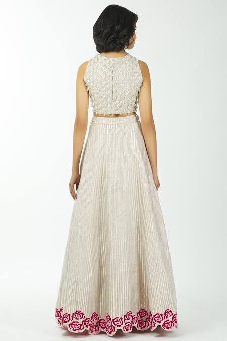 Silver lehenga with embellished all over. Paired with embellished blouse & dupatta.
