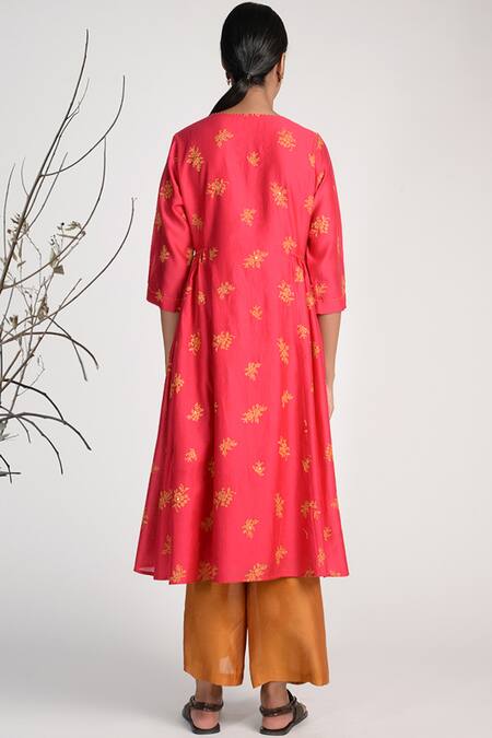 Buy_Umbar_Pink Silk Split Embroidered Kurta_at_Aza_Fashions