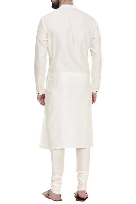 Buy_Mayank Modi - Men_Cream Silk Jaquard Kurta And Churidar Set_Online_at_Aza_Fashions