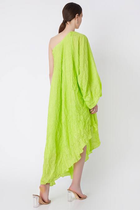 Buy_Masaba_Green Silk One Shoulder Dress_at_Aza_Fashions