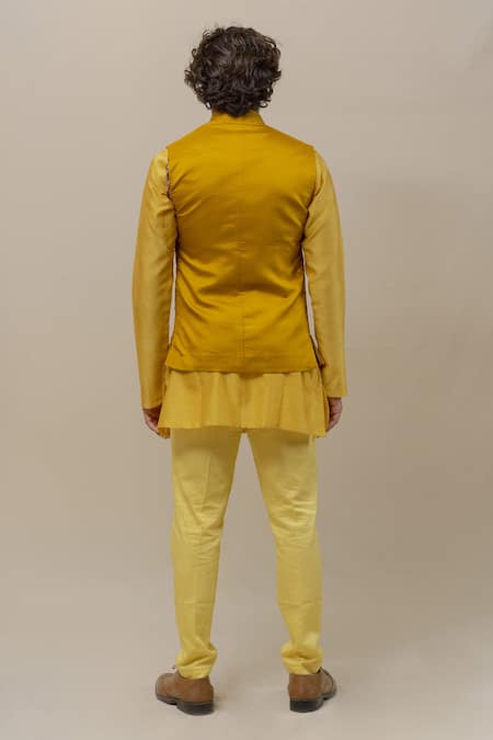 Yellow Silk Quilted Nehru Jacket