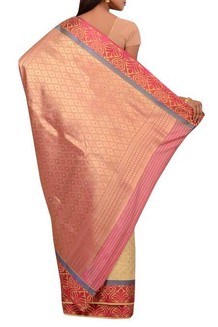 Buy_Samyukta Singhania_Beige Silk Saree With Running Blouse_Online_at_Aza_Fashions