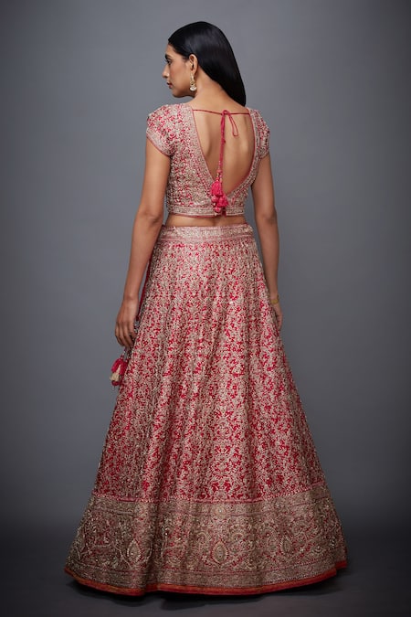 Buy_RI.Ritu Kumar_Pink Silk Satin Leaf Neck Embroidered Bridal Lehenga Set _Online_at_Aza_Fashions
