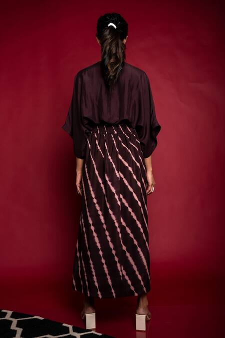 Buy_Nupur Kanoi_Brown Silk And Crepe Leheriya V Neck Top & Lungi Set_Online_at_Aza_Fashions