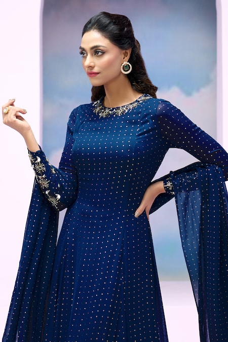 Blue Georgette Sequins, Mirrors, Tassels Soraya Gathered Anarkali With Dupatta