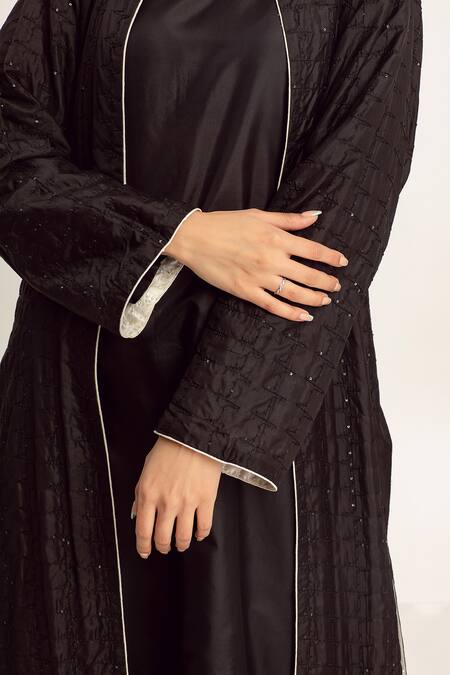 Black Silk, Chanderi Round Reversible Coat And Tunic