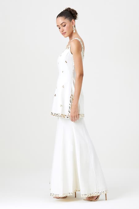 Ivory Crepe, Silk, Chiffon Mirrors, Embroidery Soha Kurta Sharara Set