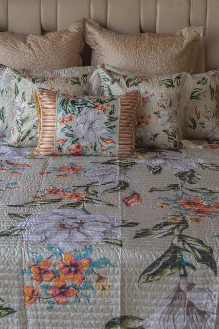 Dimensions: L x B (in inches):, Pillow Case: 18 x 28, Cushion Cover: 18 x 18, Oblong Cushion Cover: 14 x 20, Note: Only the 1 Quilted Bedcover, 2 Quilted Pillow Case, 2 Accent Cushion Cover, 1 Oblong Cushion Cover shown in the image is being sold, cushion filler is not for sale