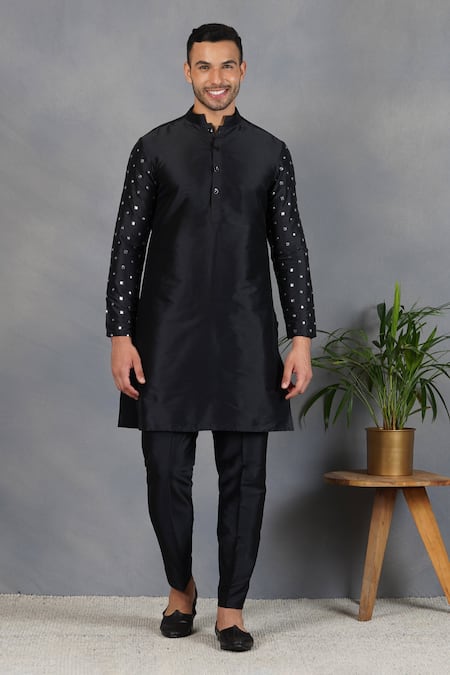 Eleven Brothers_Black Silk Mirror Siyah Aasteen Kurta Set _Online_at_Aza_Fashions