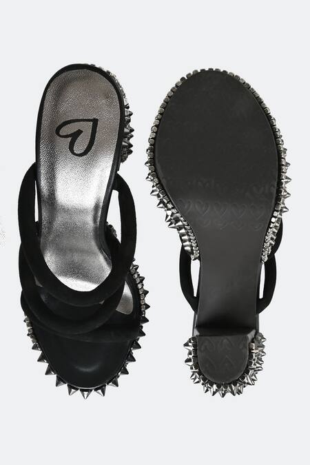 Triple strap design for a secure fit, Striking stud embellishments along the sole, Unique abstract stud detailing on the heel