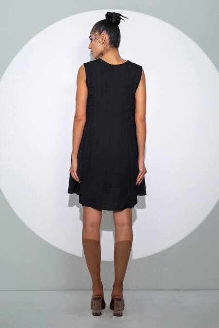 Buy_Pocketful Of Cherrie_Black Crepe V-neck Sleeveless Side Pleated Dress_at_Aza_Fashions