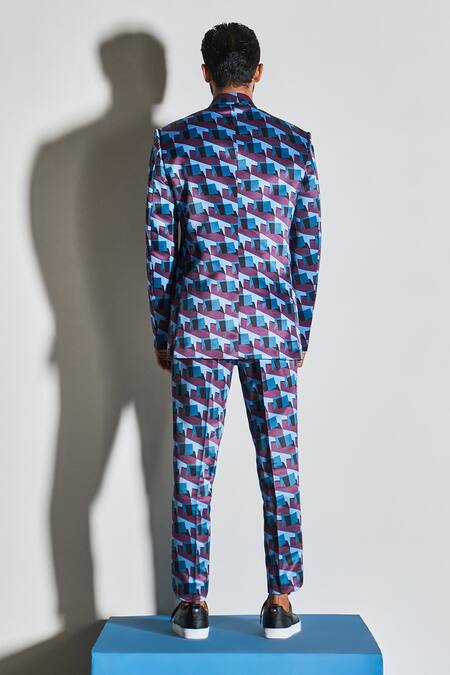 Multi Color Dull Satin Geometric Slim Fit Pant