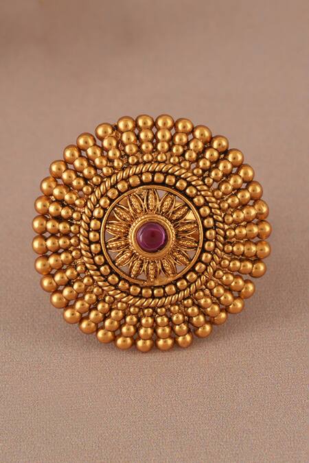 Gold Plated Beads, Stones Antique Ruby Spiral Ring