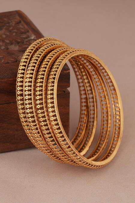 Buy_Smars Jewelry_Gold Plated Cut Work Carved Jaali Bangles-Set of 4_Online_at_Aza_Fashions