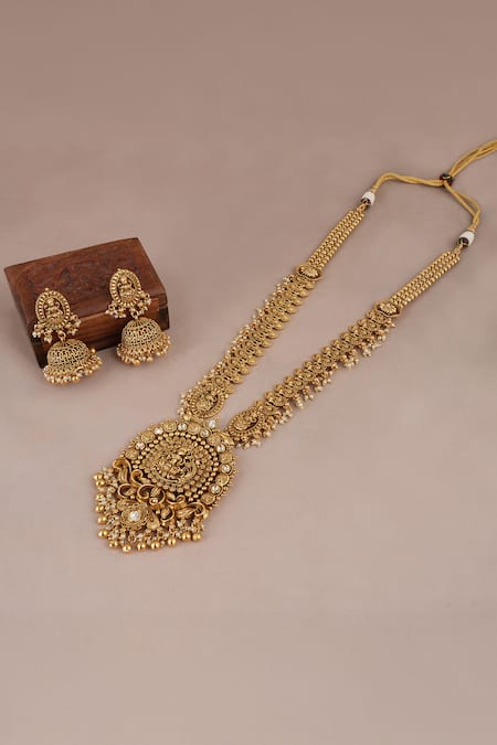Buy_Smars Jewelry_Gold Plated Stones Designer Necklace And Earring Set_at_Aza_Fashions