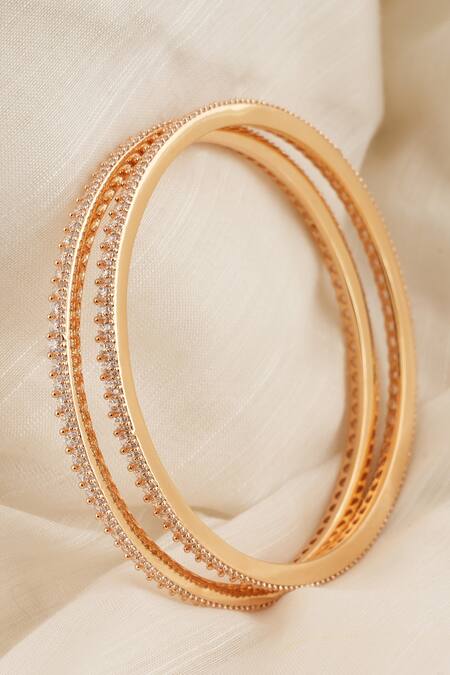 Buy_Smars Jewelry_Gold Plated Cubic Zirconia Diamond Elegant Studded Bangle - Set Of 2_at_Aza_Fashions