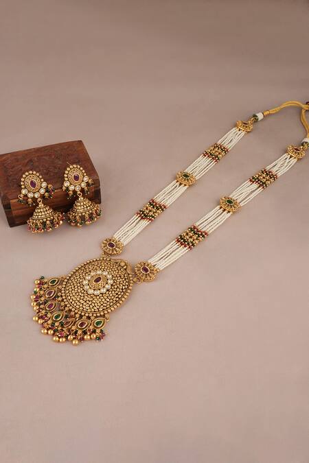 Buy_Smars Jewelry_Gold Plated Stones Synthetic Necklace And Earring Set_at_Aza_Fashions