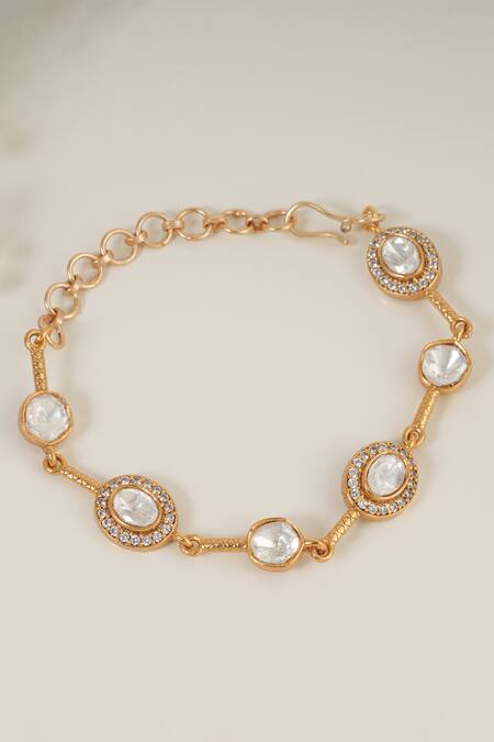 Gold bracelet featuring cubic zirconia stones and kundan embellishments