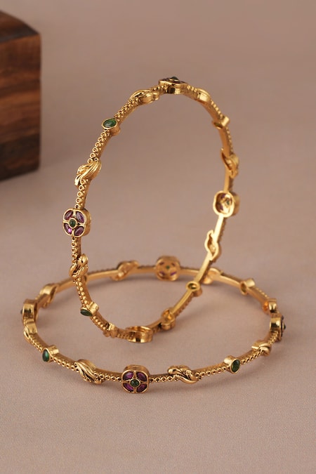 Smars Jewelry_Gold Plated Stones Antique Bangle Set_Online_at_Aza_Fashions