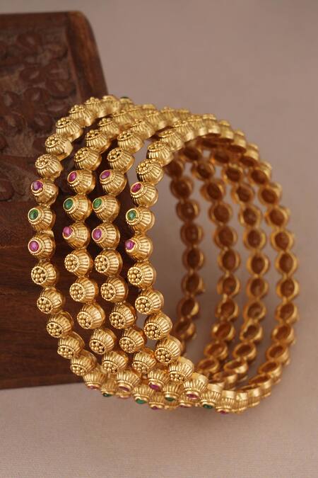 Buy_SMARS JEWELRY_Gold Plated Crystals, Stones Studded Antique Bangles-Set of 4_at_Aza_Fashions