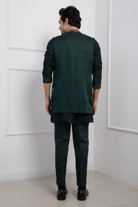 Green cowl kurta featuring sequin embroidered sleeves and a relaxed fit. Paired with solid straight pants for a complete look.