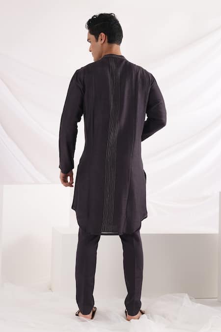 Black Linen, Satin, Bamboo, Silk, Cotton Sequins, Thread Work Bundi Kurta Set