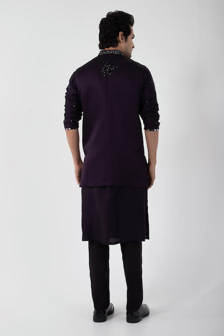 Purple Nehru jacket featuring intricate floral mirror and thread embroidery