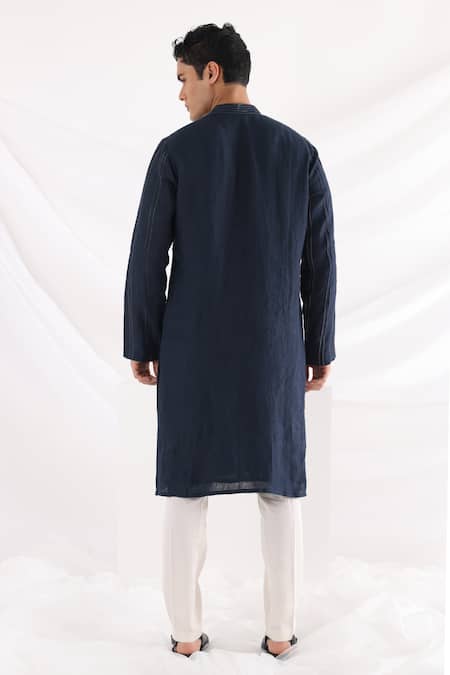 Black Linen, Cotton Embroidery Criss Cross Pintuck Kurta Set